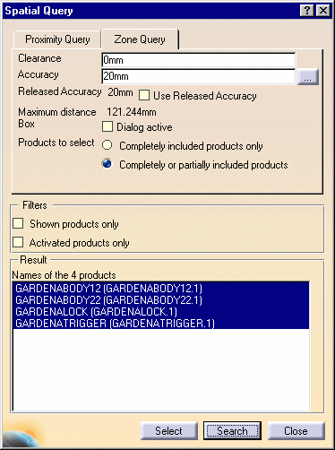 all of the neighbors of a chosen part, a zone query enables you to find all