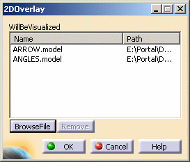 document. The selected documents now appear in the 2DOverlay dialog box.