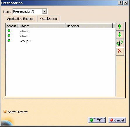 The Presentation will be opened. The Presentation dialog box will appear with its current content.