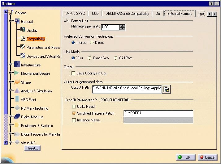 the specific instance located in the part. In order to import a specific instance (named INST1 for example) the name retrieved from Creo® Parametric or PRO/ENGINEER® should be put in the Instance Name field in Tools -> Options prior to the batch or interactive conversion. |
