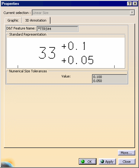 name, the standard representation, the numerical size value and possibly the