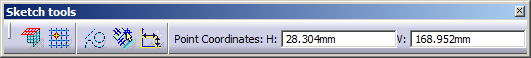 The values of the elements you sketch appear in the Sketch tools toolbar as you move the cursor. In other words, as you are moving the cursor, the Horizontal (H), Vertical (V), Length (L) and Angle (A) fields display the coordinates corresponding to the cursor position.