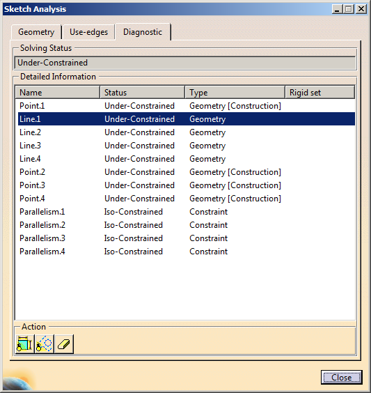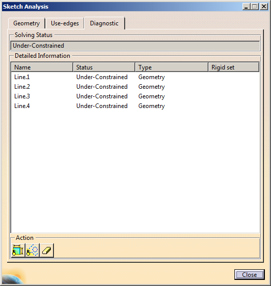 you of the general sketch status, whether it is under, over or iso-constrained.