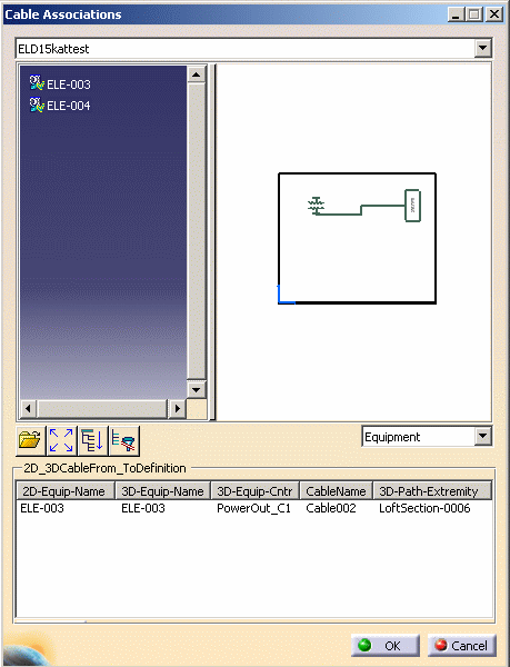 | 2. | Select what you want to display by clicking the down arrow below the schematic and selecting one of the elements, in this case equipment. | |