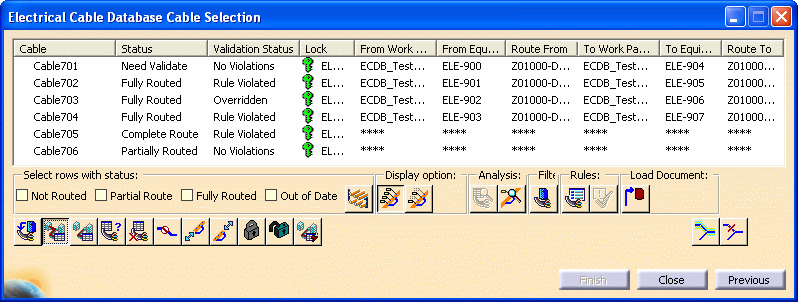 Use the Electrical Cable Database Cable Selection dialog box to load cable data from the database, and to route cables. | |