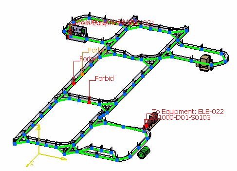 In your document, select the objects on the path that you want to forbid from being used when routing. The objects you select display as Forbid in your document.
