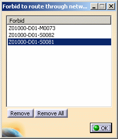 And the objects names display in the Forbid to Route Through Network dialog box.