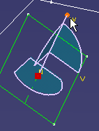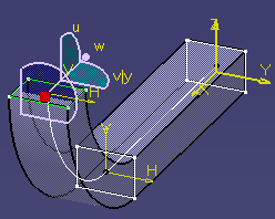 The "global" compass is that which determines the relative XYZ position of your product. When you place loft sections, a "local" compass resides with the last section placed. It is the angle relative to the local compass that determines the position of the next section. The (-) or (+) buttons in the Angular mode follow the "right-hand rule" convention (with your thumb being the axis and the natural direction of the fingers being the positive (+) angle). In the example below (left), two sections have been placed along the global Z axis (positive). The Angular mode has been activated and the Z or W (+) button pressed to create a section at 90deg (about the w/z axis) relative to the previous section placed. In the image below (right), the section was placed activating the Y or V (-) button. The rotation is about the v/y axis.