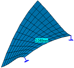 The Free_vibrations_compressor_blade_QD8.CATAnalysis document presents a complete analysis of this case, computed with a mesh formed of parabolic and quadrangular elements (QD8).