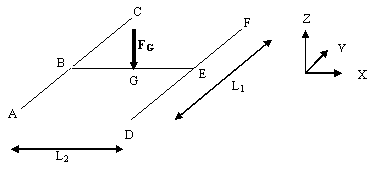 The geometry is built with two Parts, inserted in a Product. The first Part includes the beam AC and the beam DF. The second Part includes the beam BE. |