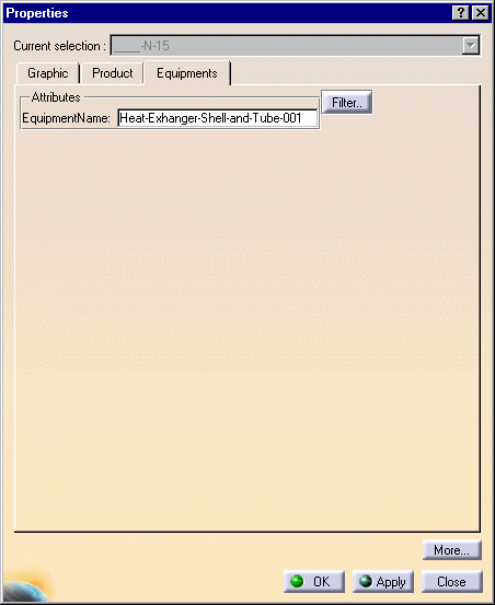 | 2. | Click on the Equipments tab to display properties and enter the values you want to. In the case of Equipment Arrangement the only attribute is the equipment name. | |