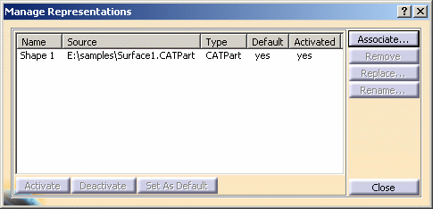 5. Select AnalysisSurface11.CATAnalysis in the Manage Representations dialog box and click the Activate button.