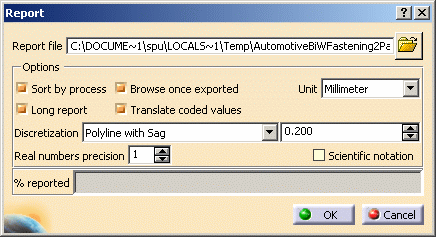 | The Report dialog box opens. |