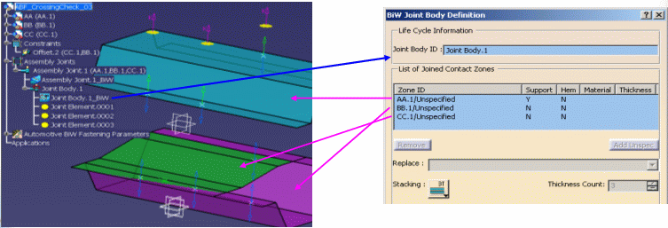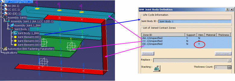 - The fastener's hem zone crossed thicknesses attributes are ordered
