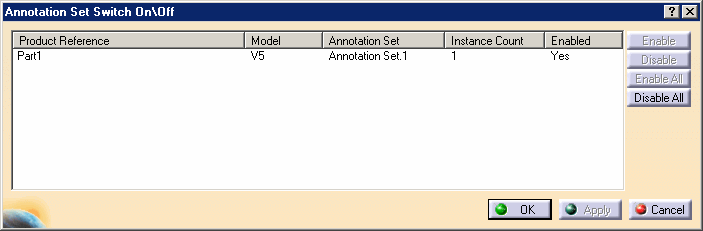 Click List Annotation Set Switch On/Switch Off in the Visualization toolbar. The Annotation Set Switch On/Off dialog box is displayed.