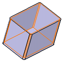 The Shellable Feature command also adds material volume to the outside of another material volume that it intersects within the same body, thus extending the boundaries of the volume, as well as increasing the internal spatial volume of a shelled volume. The added volume inherits the shell properties (wall thickness) of the body. This task shows you how to create a shellable prism. |