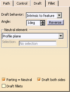 operation by defining the followings with the faces to be drafted. Note: You need to define a