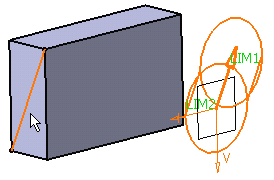 What the user needs to do is sketch the circle on a plane fully independent from the shellable prism. In other words, he can either isolate the wireframe plane (using the Isolate command) if he really wishes to use that plane or create a plane with no link to the first shellable feature. Example 2In this second example, the user creates a line using two vertices of the shellable prism. He then creates a shellable prism and decides to use that line to define the direction of the new prism. Once he validates his operation, the application warns him that it is not possible to recompute the part due to an update cycle. |