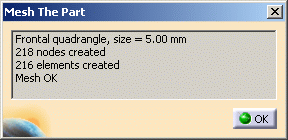 The Mesh The Part dialog box appears and provides you a summary on the surface mesh.