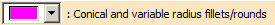 a color of corresponding control for the conical and variable radius rounds/fillets and
