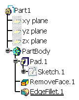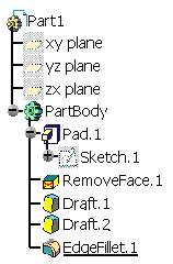 localization of the previous specifications in the design tree. It can be a way to change locally the specifications of the part: