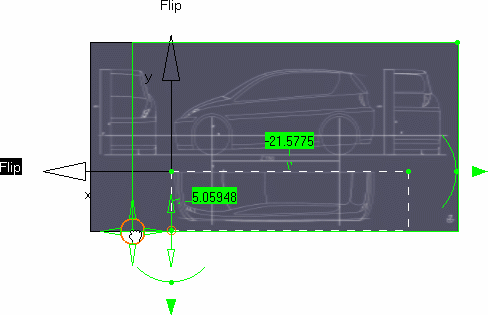 Once the bottom left manipulator is set in place, use the top-right manipulator and set the green frame to limits of the car top view.
