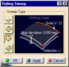 Be careful not to over-constrain the surface by setting low values for both deviation and V order. This would result in an increase of segments for the generated swept surface. |