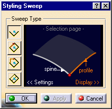This task explains how to create a swept surface, based on a profile swept along a spine. |