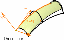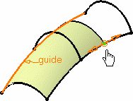They allow you to redefine the surface limits on the spine/guide. These points show up only when the surface extends beyond the reference profile, when selected, and are limited by the spine or guide's length. |