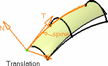 The current type is displayed when passing the pointer over the moving frame. You can move the frame along the spine using the manipulator at the moving frame's origin. |
