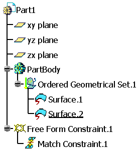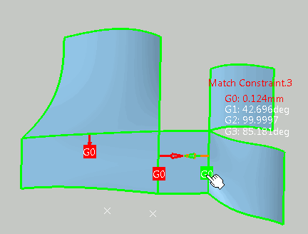 Matching Constraint command options area. If a surface is modified by two constraints, the