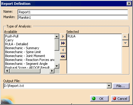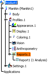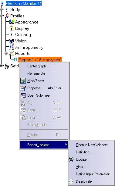 Manikin. Double-clicking on the Report 1 (1Analysis) opens the