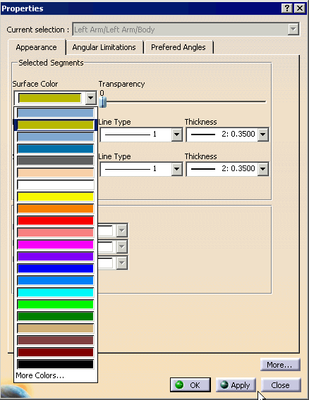 Using the Contextual MenuTo change the color of a segment using the contextual menu, right-click the mouse on the desired segment to activate the contextual menu, and choose Properties.