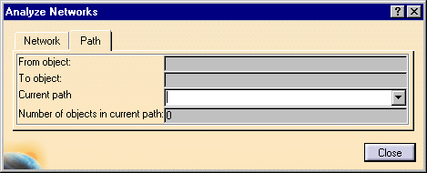 | 5. | The fabrication is highlighted in the 3D viewer as are its members in the specification tree. The Analyze Networks dialog box displays the From object and To object as well as the Number of objects in the current path. | |