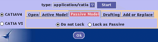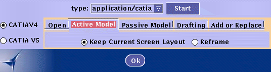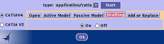 CATIA launched options. These options are those used in CATIA, VPM1 or