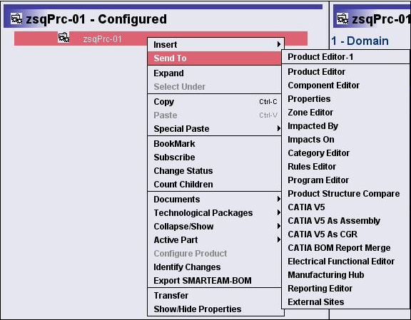 In ENOVIA V5 VPM Product Editor, right-click Send to >