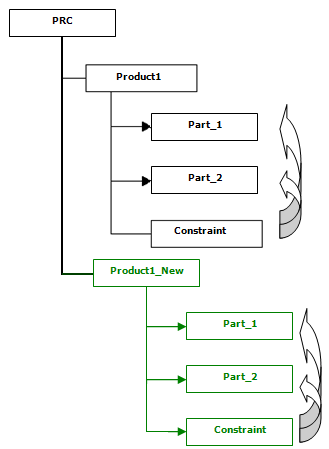 Product1_NEW is attached to the original product structure under