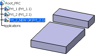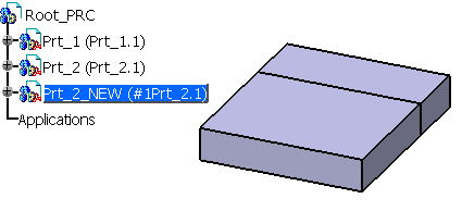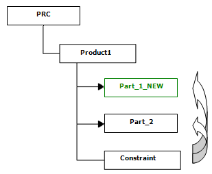 Part_1_NEW is attached to the original product structure under