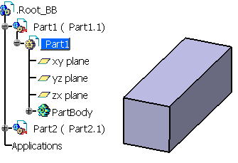 Modify a part. In the following example Part1 is
