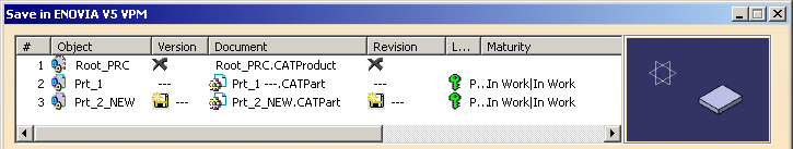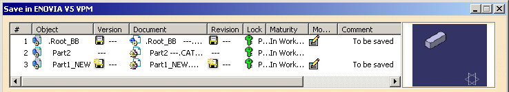 - a new ENOVIA V5 VPM Part Master and Part Version are created for