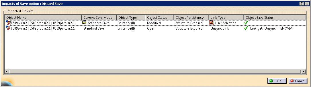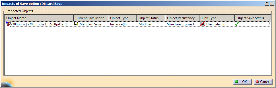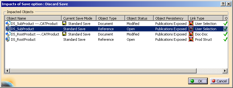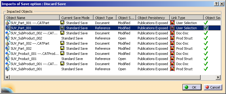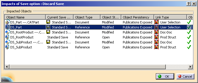 box, only the objects which are modified in CATIA session are