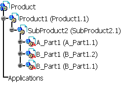 SubProduct2, A_Part1, B_Part1 and instance