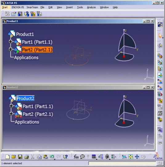Product has been previously created in ENOVIA V5 VPM. Product1,