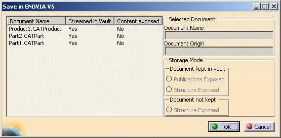 documents in ENOVIA V5 VPM. The Save in ENOVIA V5 VPM dialog box