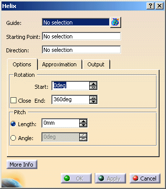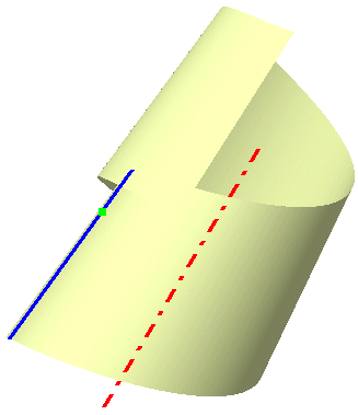 The command Helix creates a helical surface, by gradually displacing the guide along the rotation axis at the same time as it rotates about this axis. The resulting surface is referred to as a helicoid. |