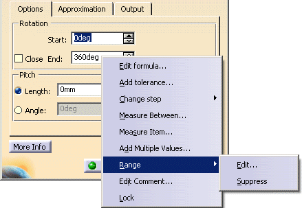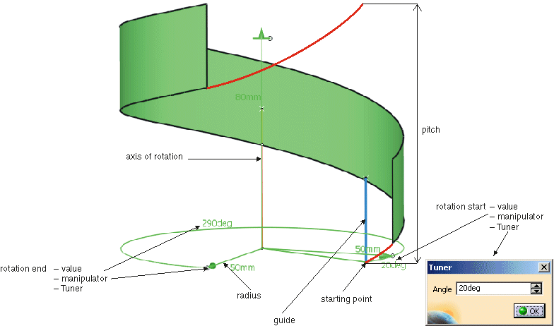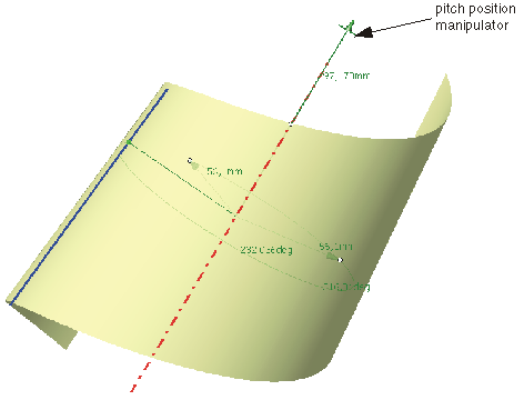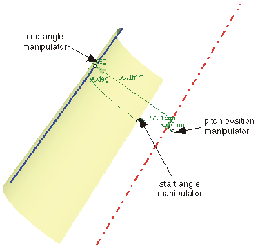 Start and end angle as well as the pitch can be modified dynamically using the manipulators. |