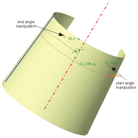 By default, the input range for start and end angle is from 0° to 360°. This range can be modfied: |