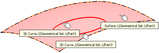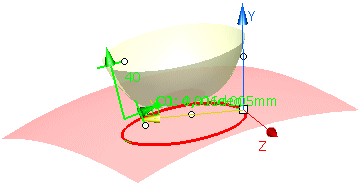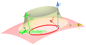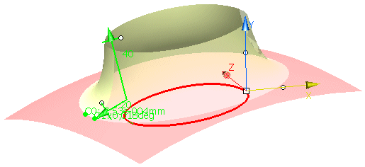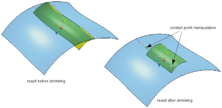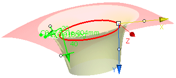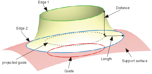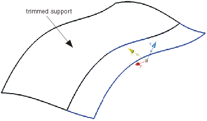If the guide curve is smaller than the support surface, automatic tangency extrapolation is performed of the trim boundary.