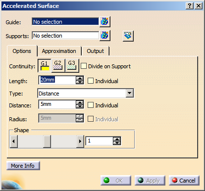- Continuity: Specifies the continuity between created accelerated surface and support from G1 to G3.