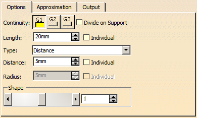 - Shape: Modifies the tangent length of the result via the scroll bar or the text box.